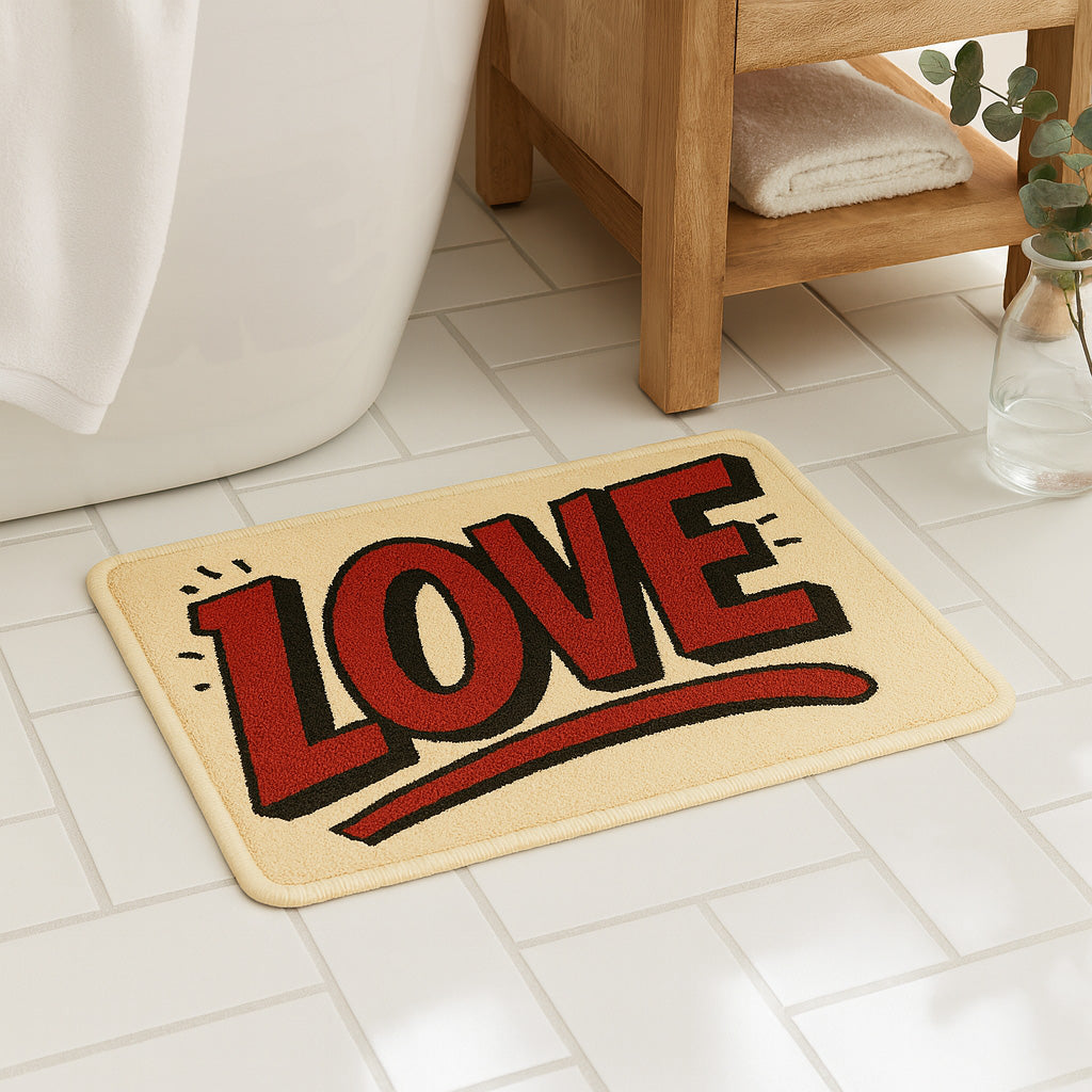 Feblilac LOVE Typography Tufted Bath Mat – Bold Red Comic Style Rug