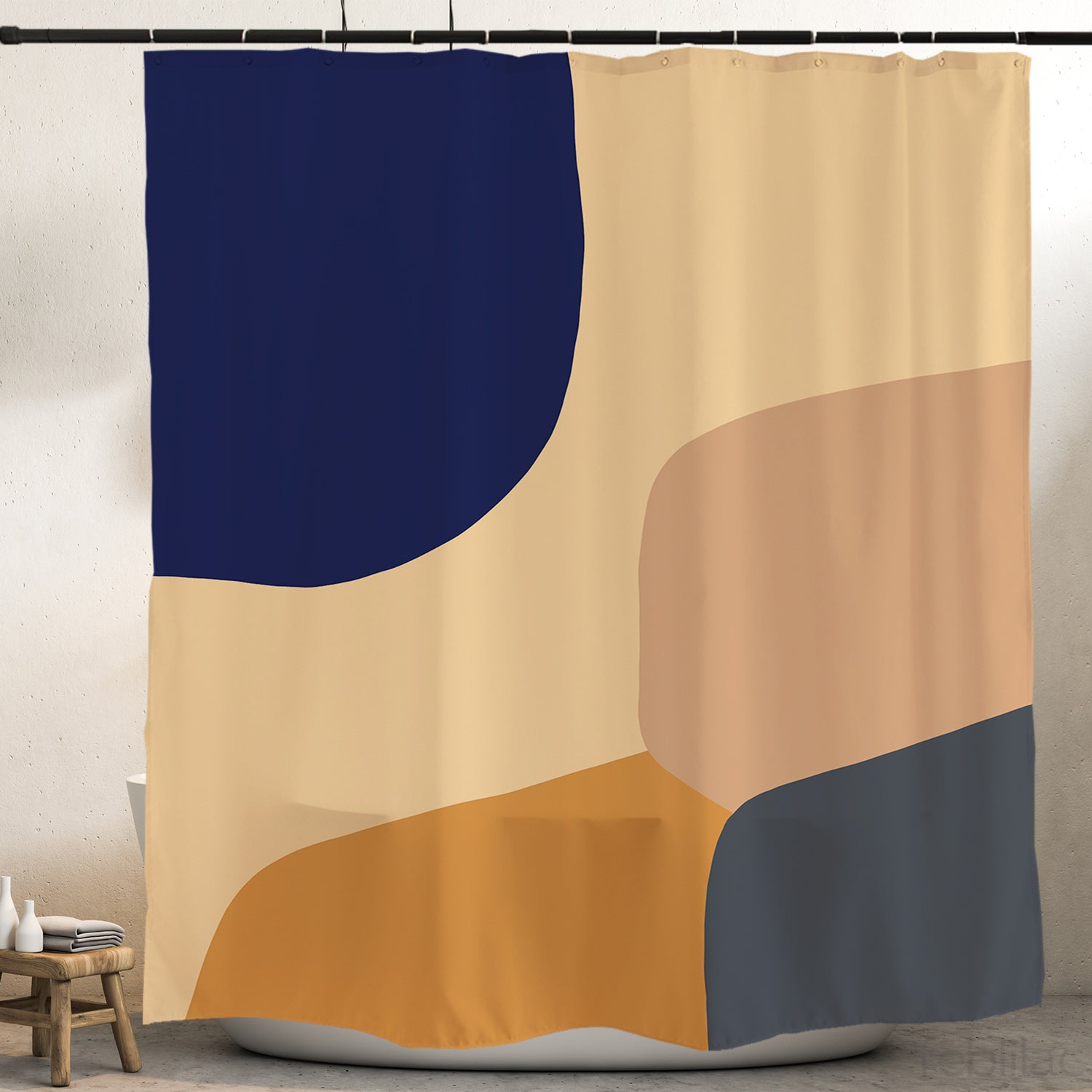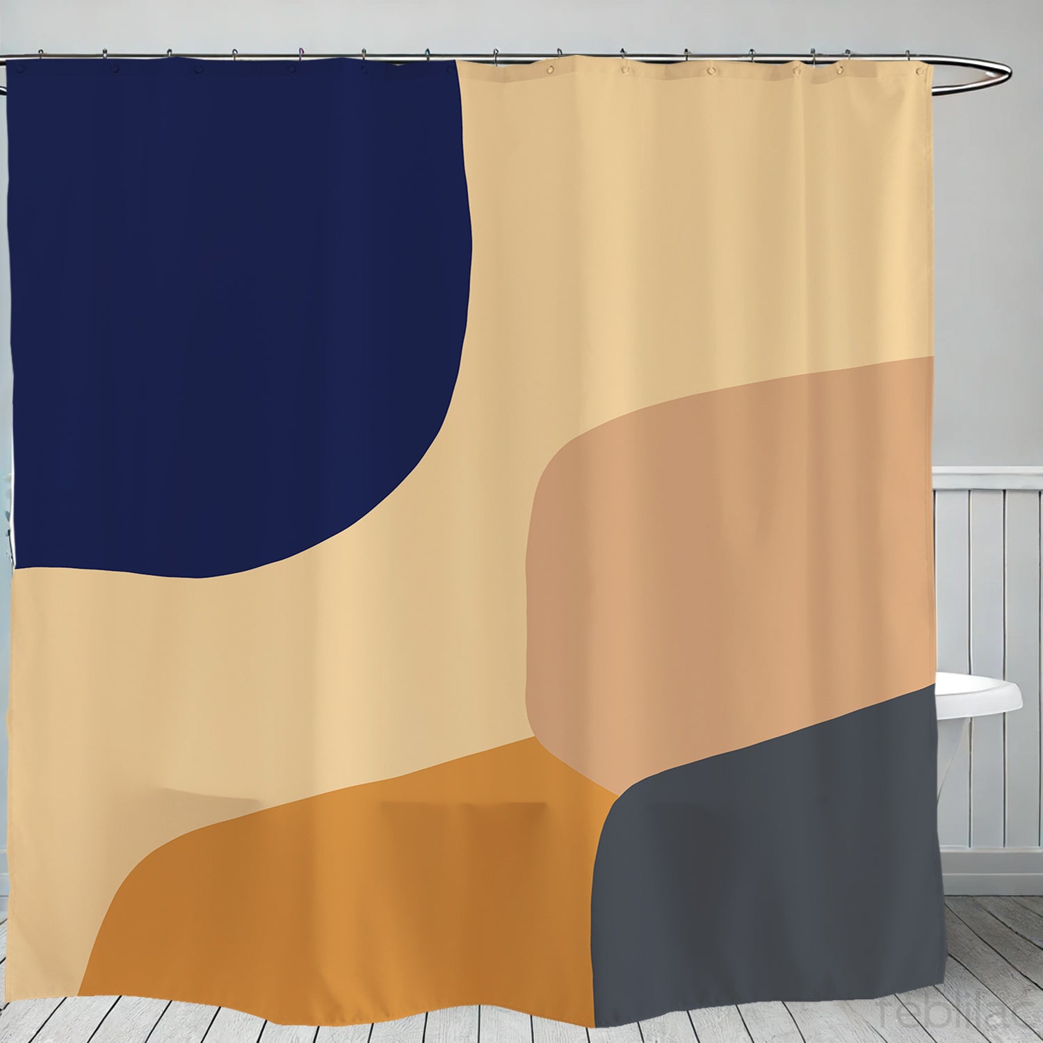 Feblilac Four Color Blocks Modern Abstract Shower Curtain with Hooks