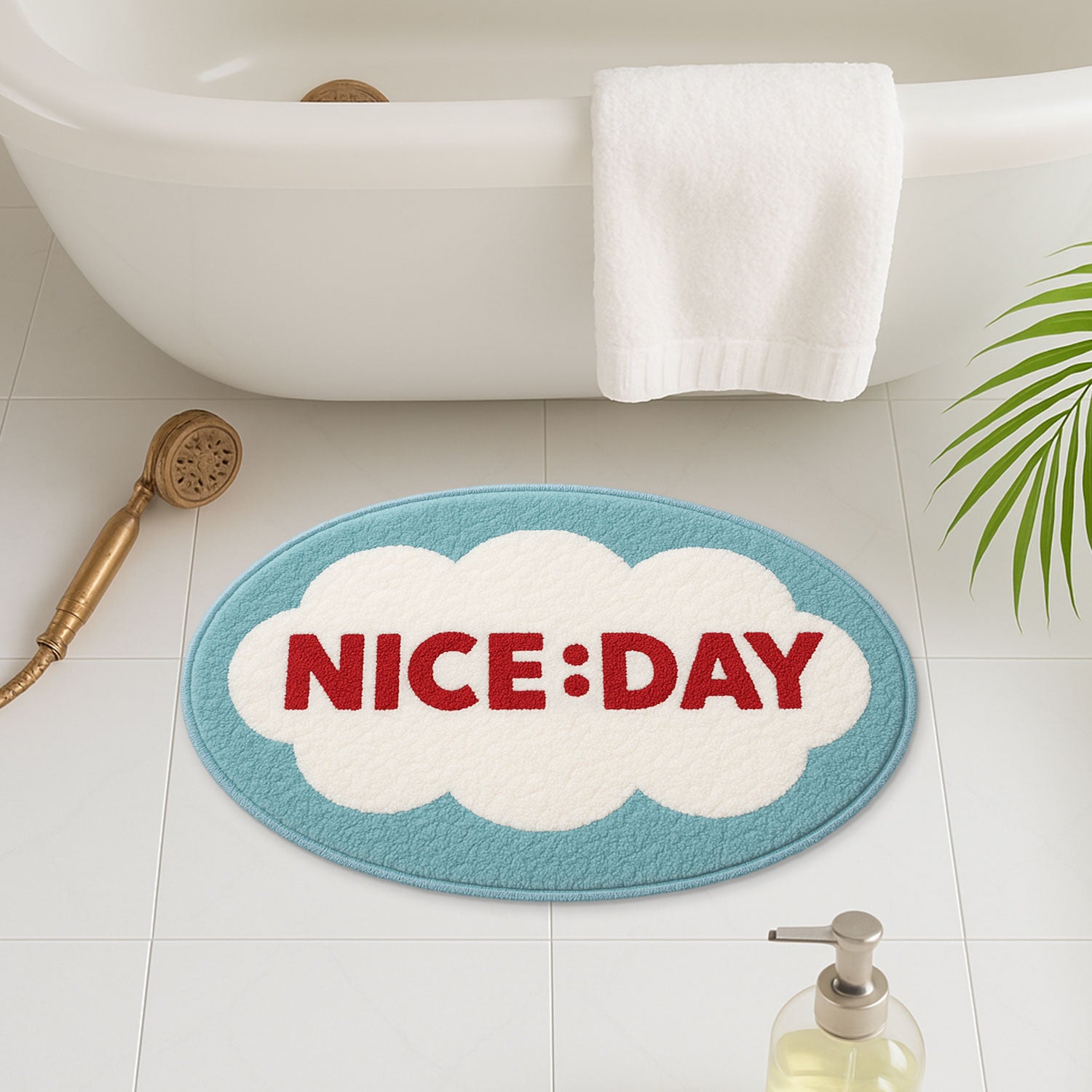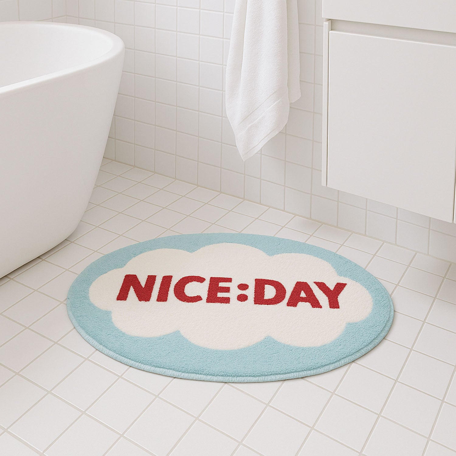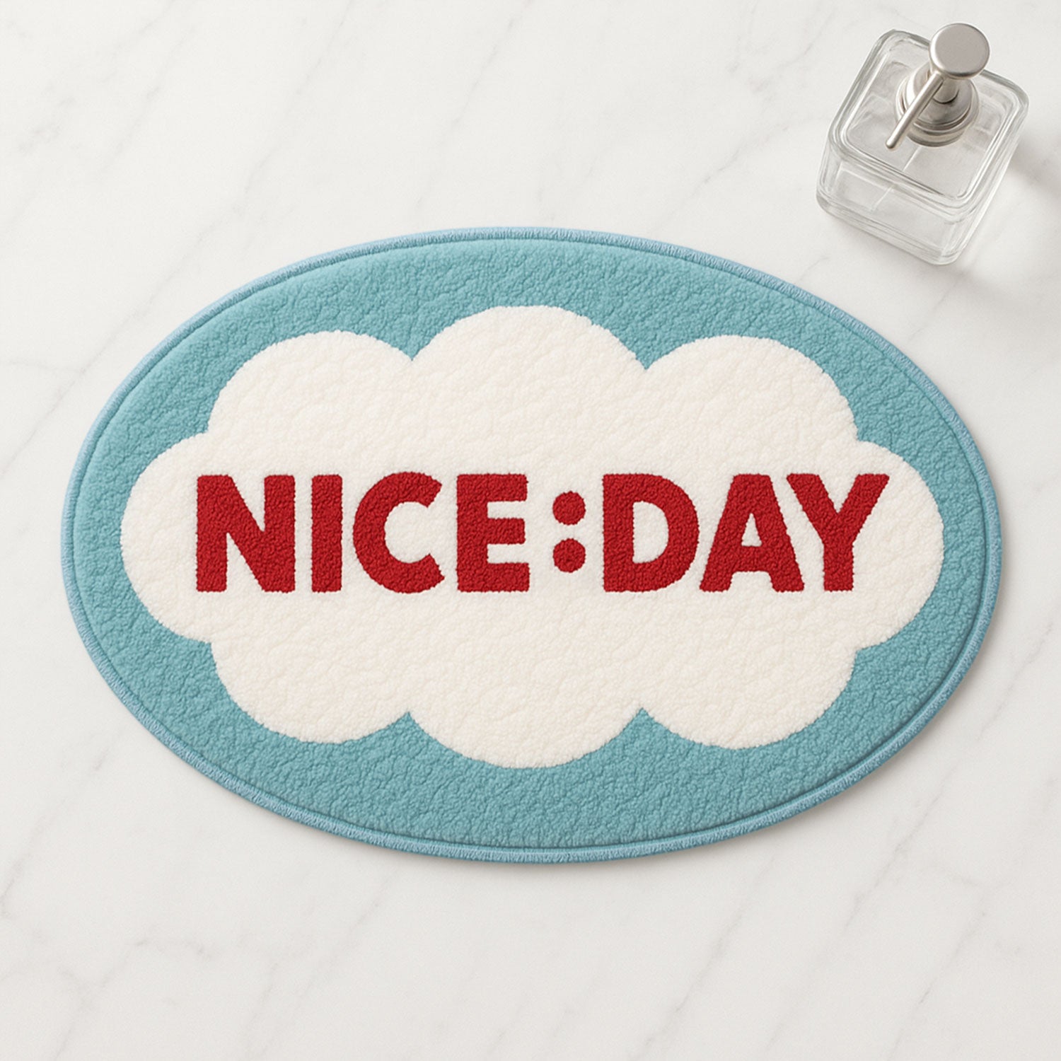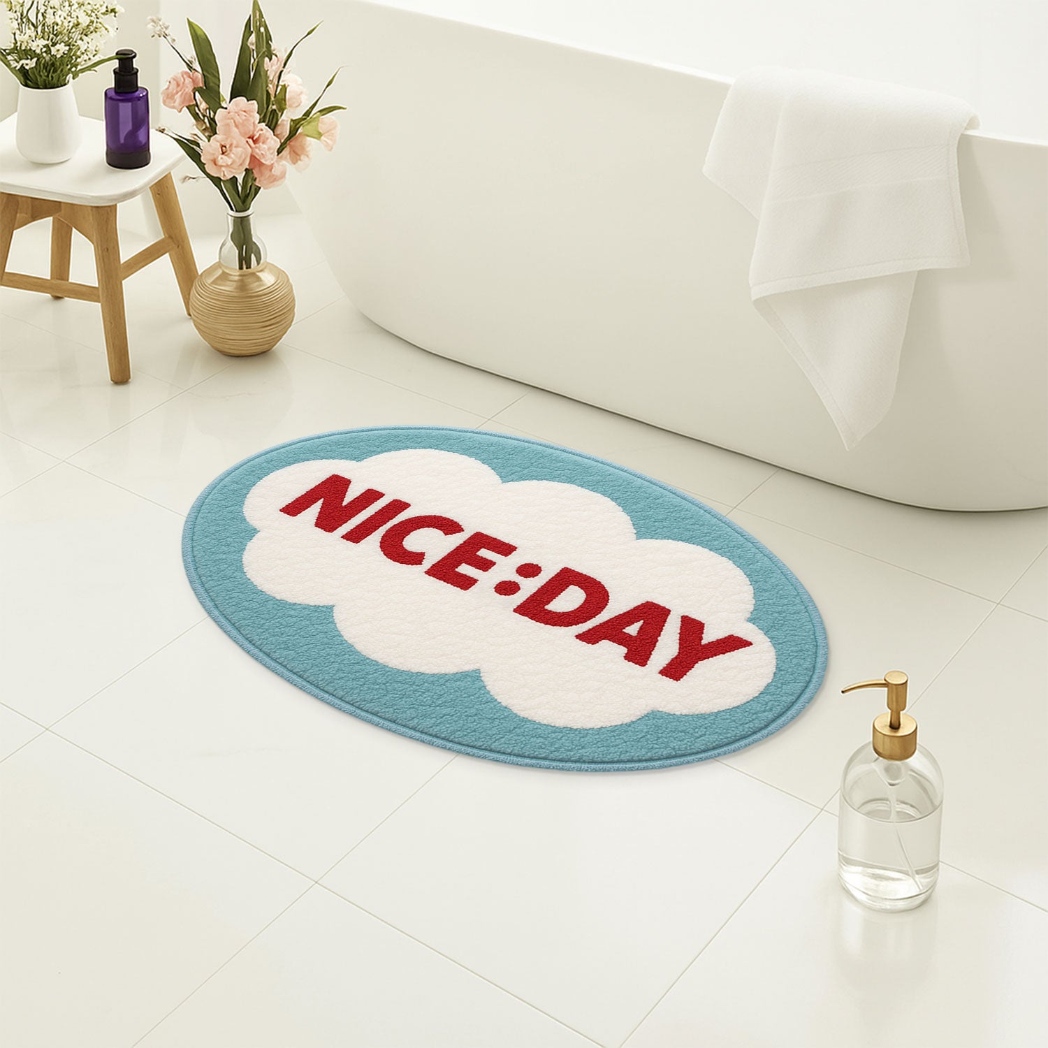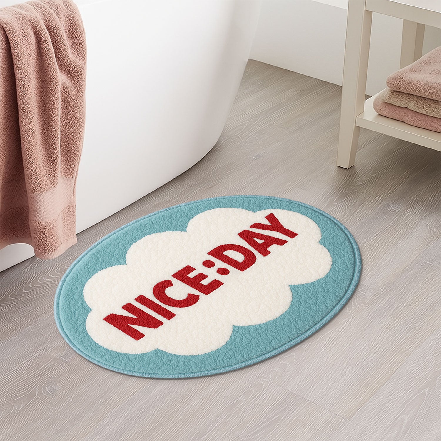 Feblilac NICE:DAY Cloud Bath Mat – Cheerful Oval Rug for Bathroom Decor