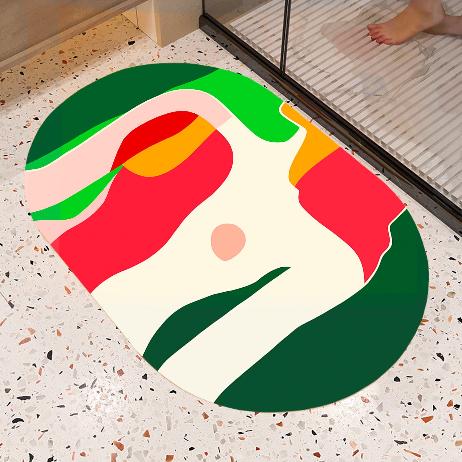 The Diatomaceous Earth Bathmat absorbs water super quickly, keeping your floor always clean and dry. With rubber on the backing, the mat is always non-slip in Bathroom.