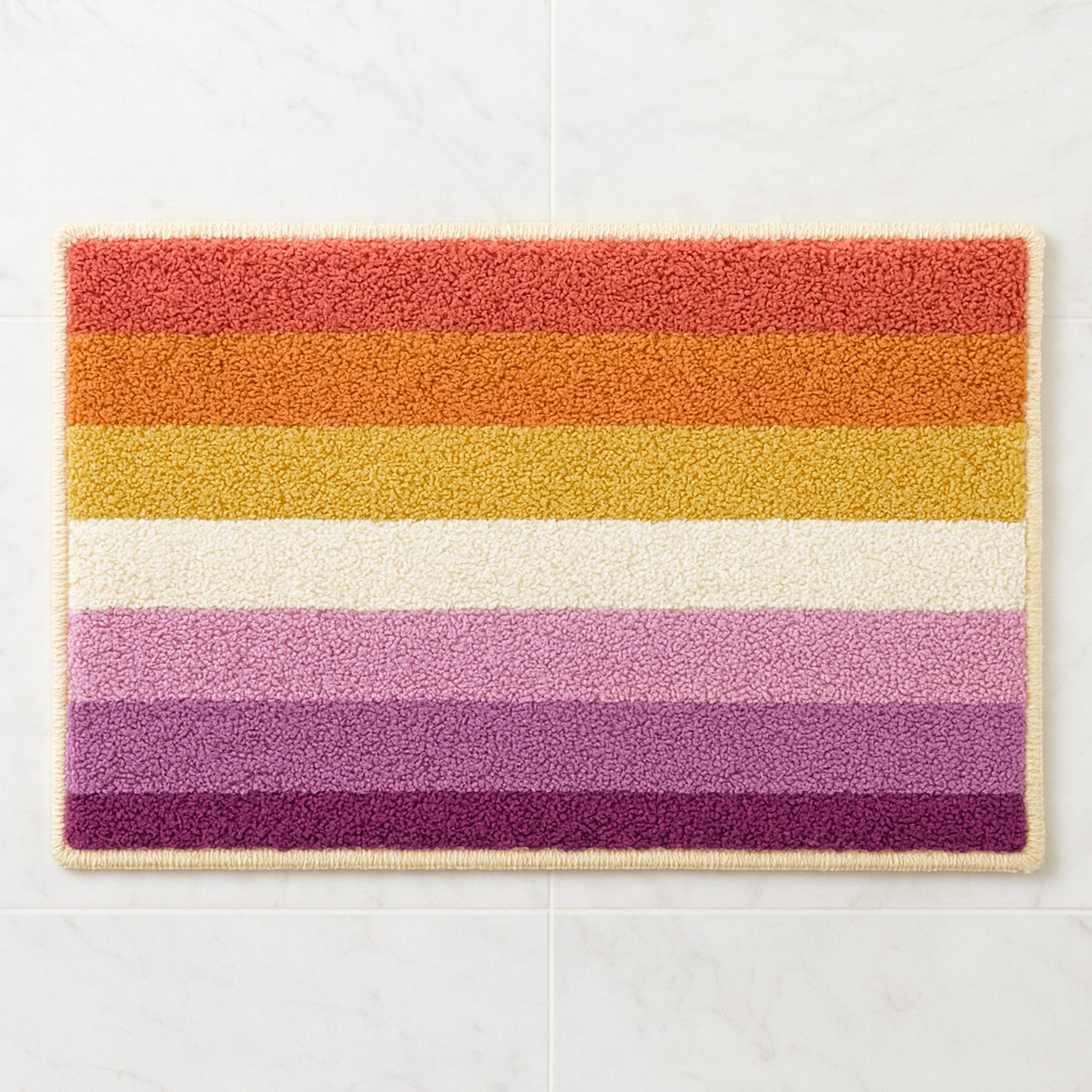 Feblilac Colorful Striped Tufted Bath Mat – Soft Absorbent Non-Slip Bathroom Rug