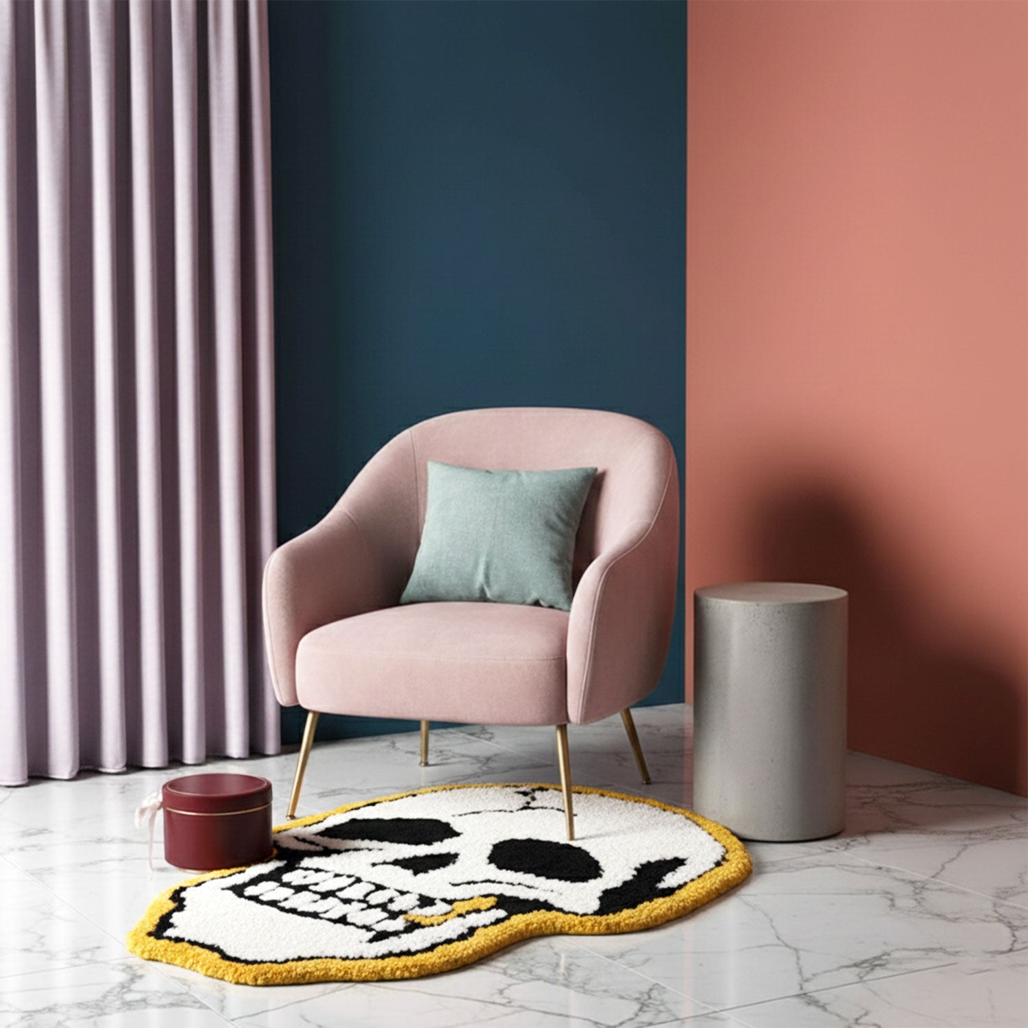 Feblilac Skull Tufted Bath Mat Funny Halloween Non-slip Bathroom Rug