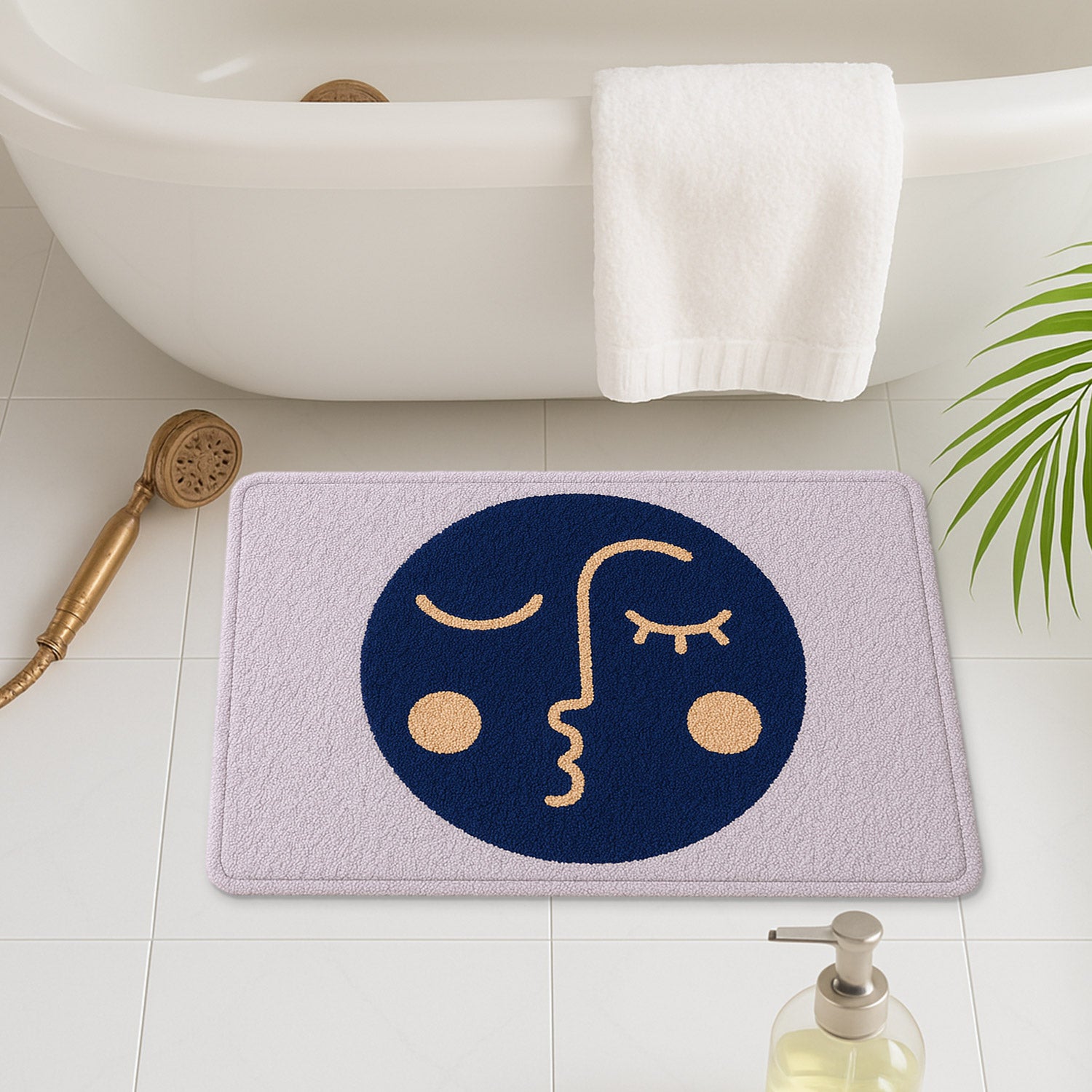 Feblilac Abstract Face Tufted Bath Mat – Modern Non-Slip Soft Bathroom Rug