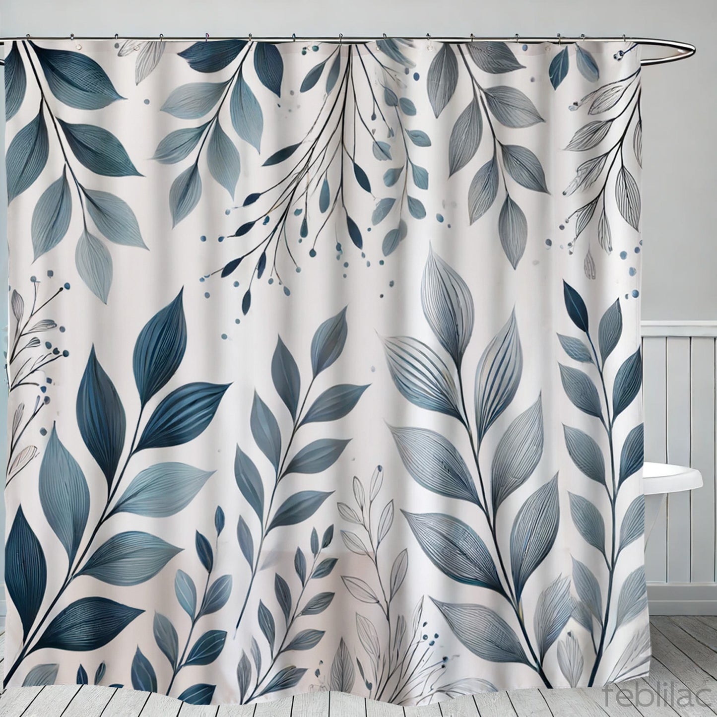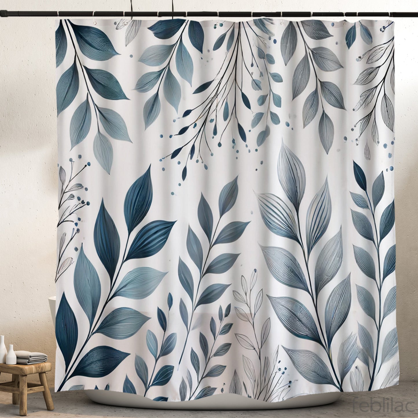 Feblilac Blue Leaf Shower Curtain with Hooks