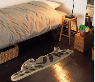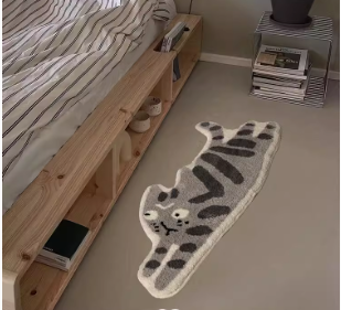 Feblilac Gray Striped Cat Tufted Bath Mat