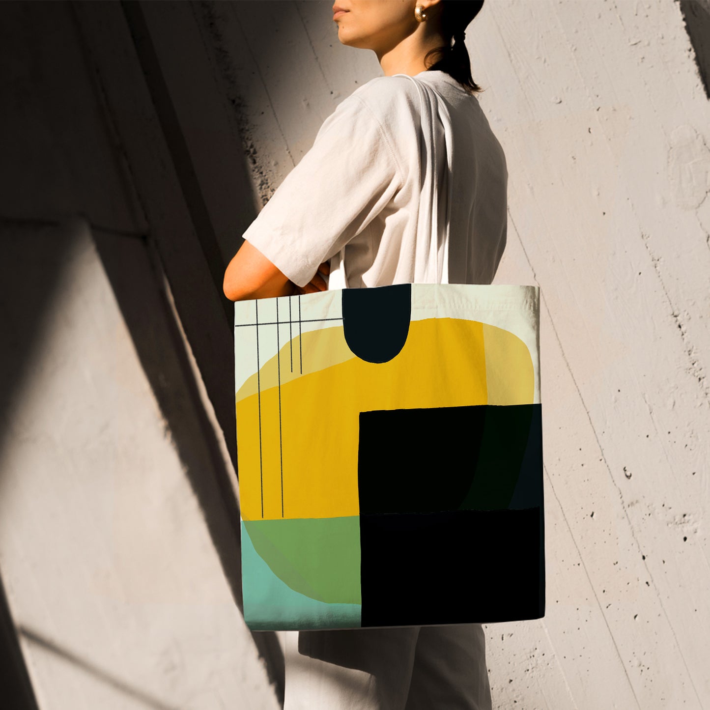 Feblilac Green Black Yellow Modern Abstract Canvas Tote Bag
