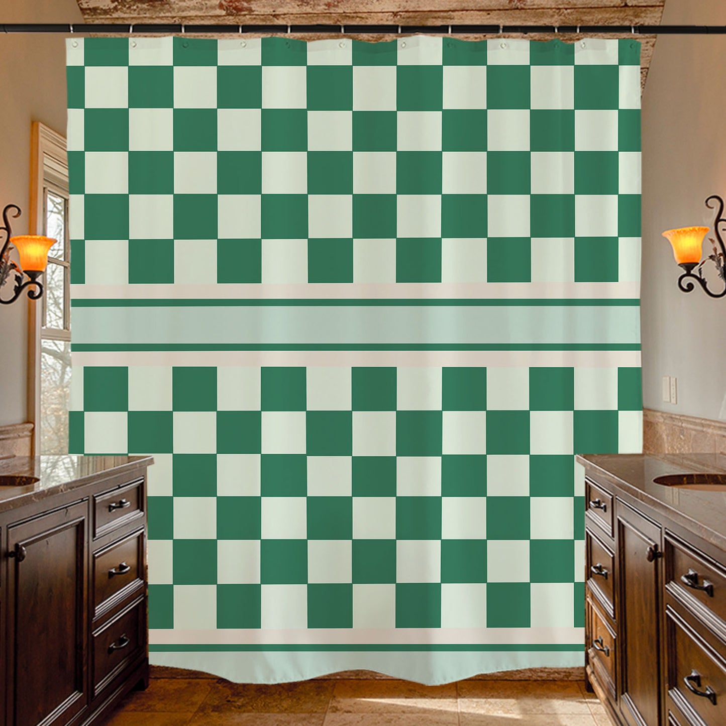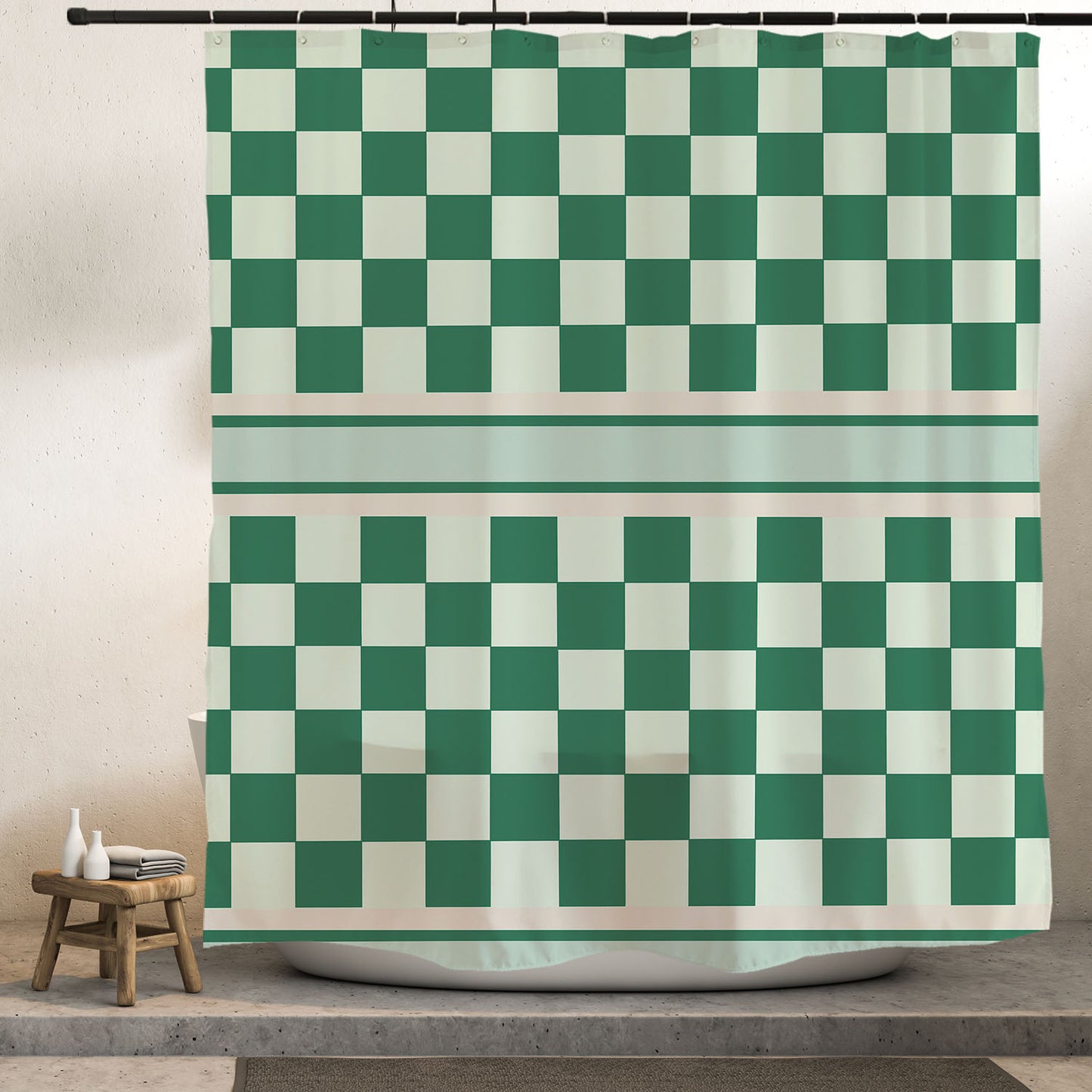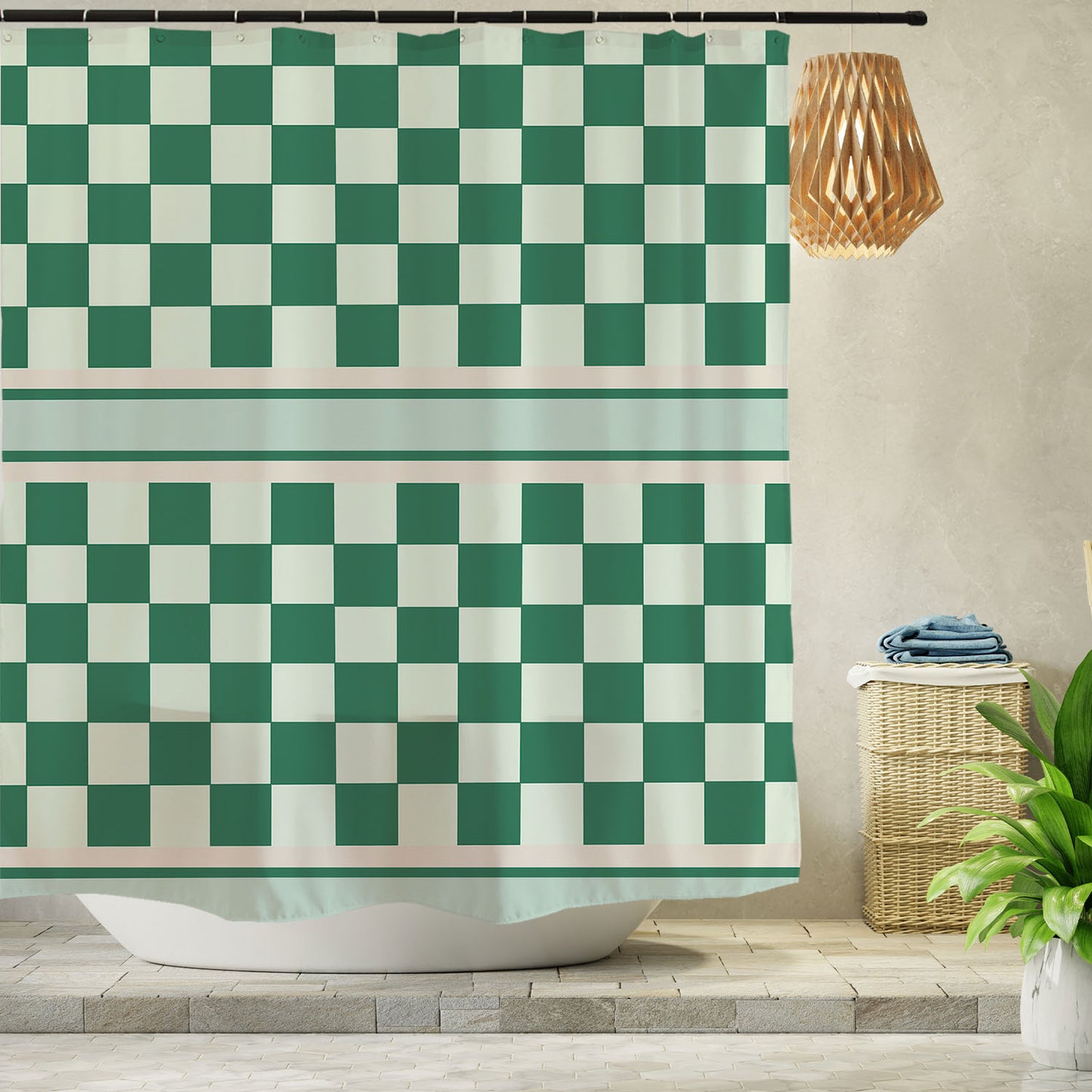 Feblilac Green Checkerboard Pattern Shower Curtain with Hooks