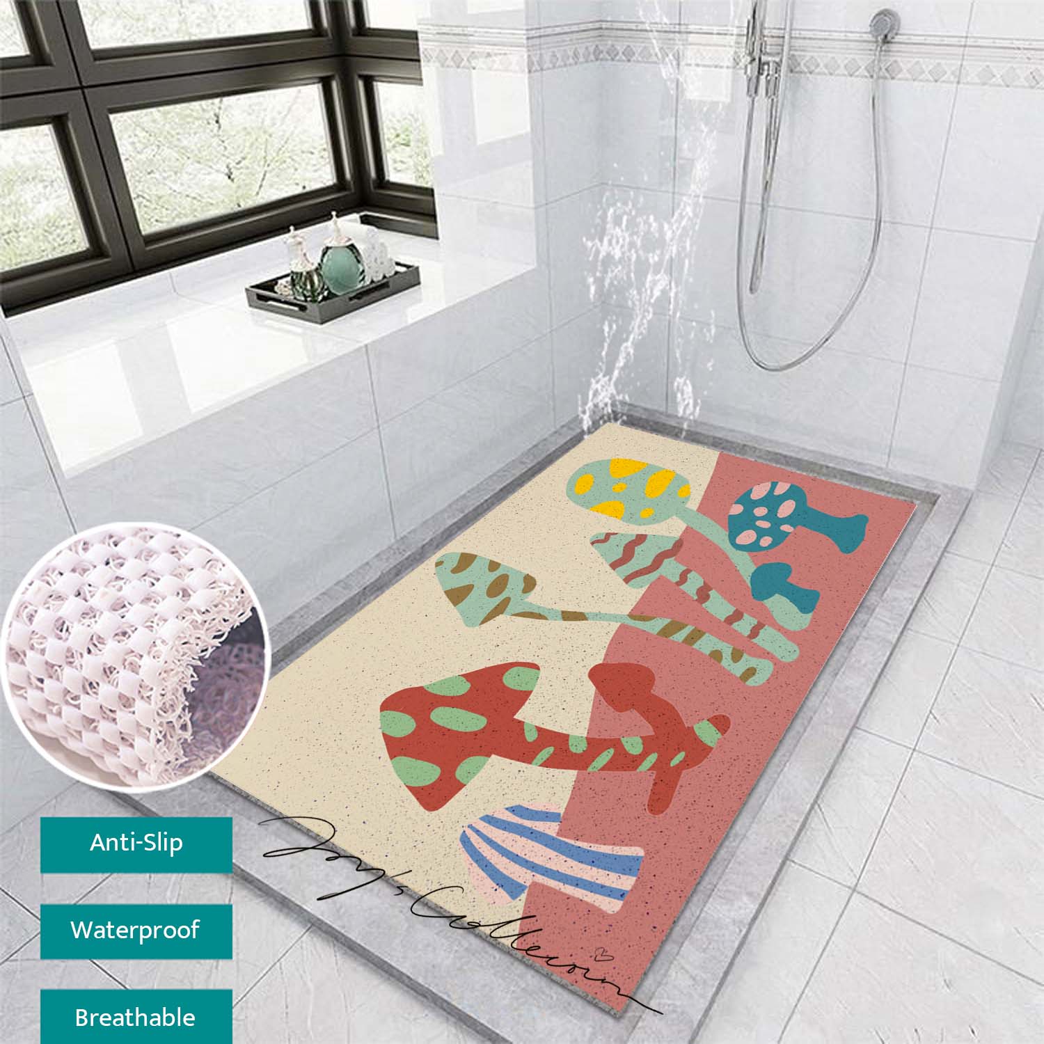 Feblilac Morandi Mushroom PVC Coil Bathtub Mat and Shower Mat