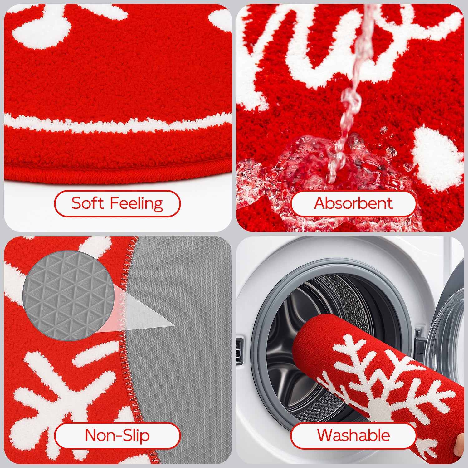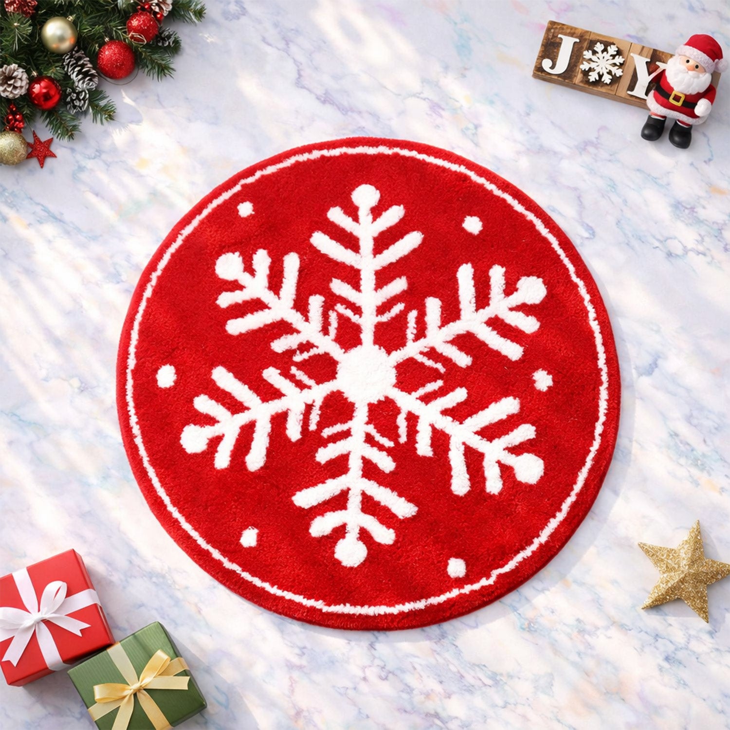 Feblilac Red background White Snowflakes Christmas style Tufted Bath Mat