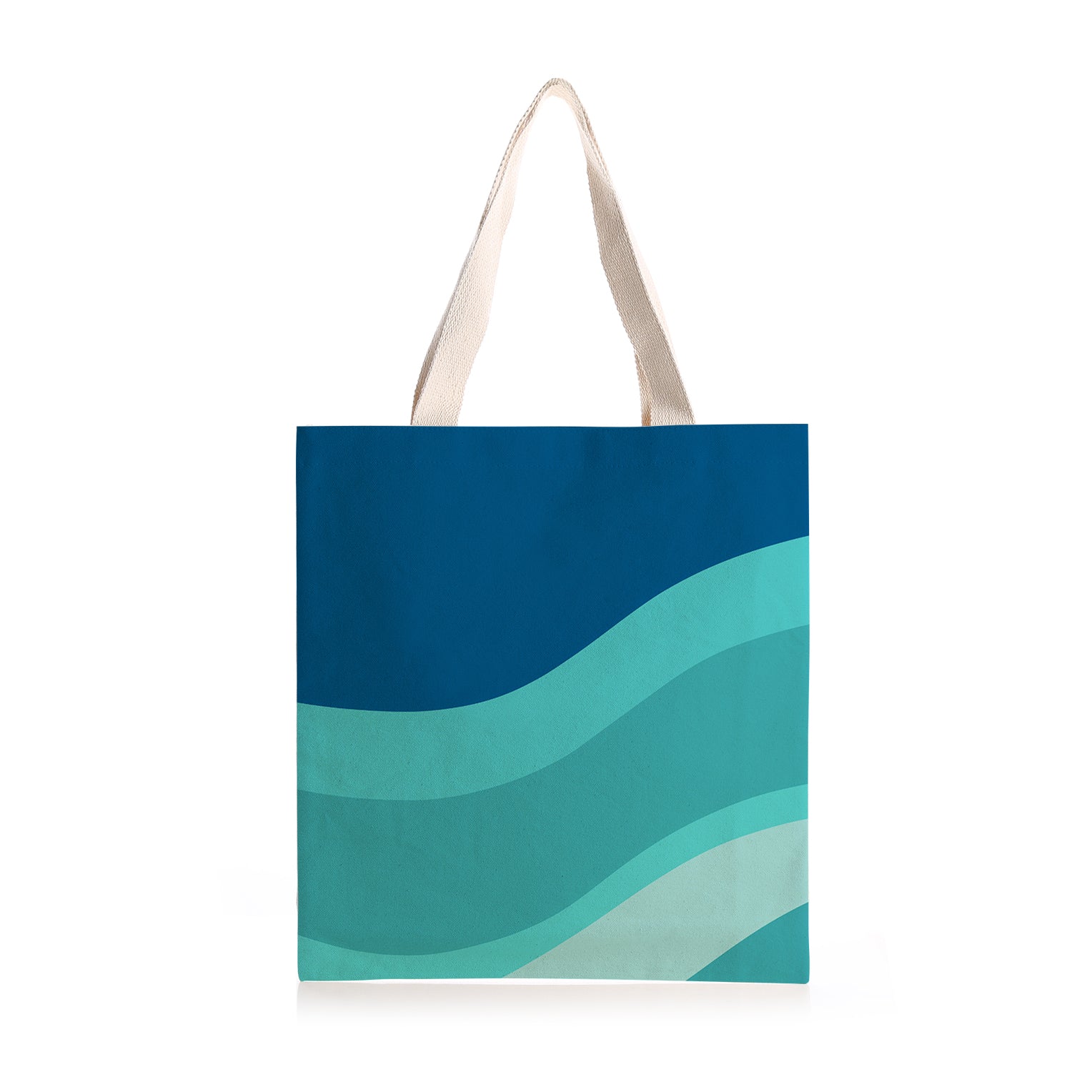 Feblilac Gradient Blue Flowing Waves Canvas Tote Bag