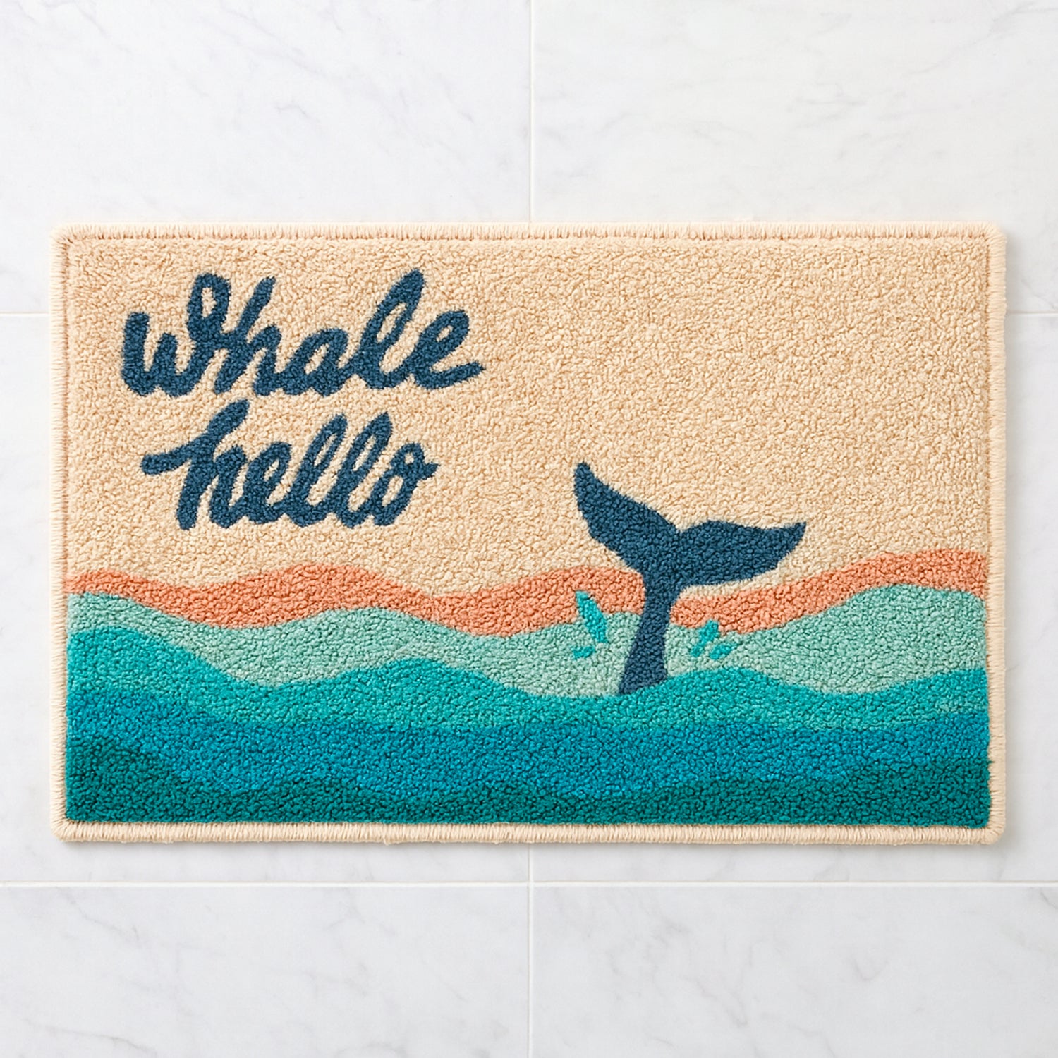 Feblilac Whale Hello Bath Mat – Nautical Ocean Themed Bathroom Rug, Soft & Absorbent, Non-Slip, Machine Washable